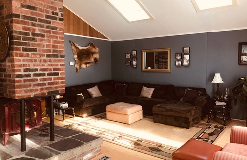 Fantastic getaway mountain retreat. The house has large open living spaces which really lets everyone spread out. Large living room on upper level and cozy family room downstairs. Upstairs there is a wood burning stove and downstairs a wood burning insert which both add to the experience and remove any winter chill! 15-20 minutes to Mt. Snow, 3 miles to Wilmington Town center and .5 miles to public beach area. Very well equipped kitchen and large deck at the back of the house. Great location for any season.
