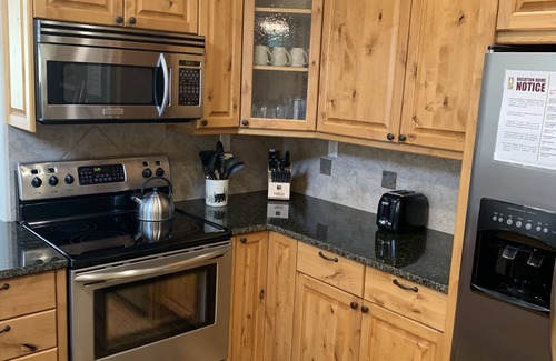 License #6035 As you enter this two story townhouse masterpiece you are greeted with some of the finest living in Estes Park. Hardwood floors, granite countertops and comfortable furnishings await you. The living room has a gas fireplace and large flat screen television for your comfort and viewing pleasure. Once you look out the windows you will wonder why anyone would bother with a television! The surrounding mountains and wildlife will provide all the beauty and entertainment you came for.