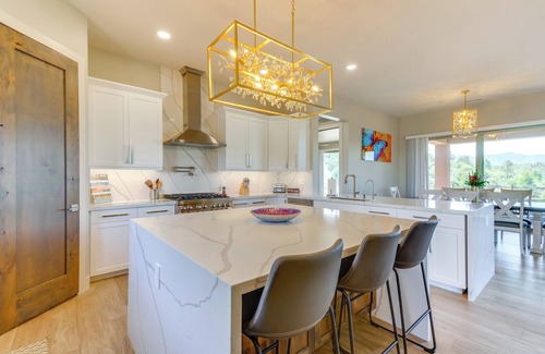 Perched on a secluded hilltop paradise, only 6 miles from downtown Prescott, this 4-bedroom, 3-bath vacation rental home offers the perfect backdrop for your mountain-town retreat. Sip your morning coffee on one of the patios, then explore Whiskey Row or dive into water activities at Watson Lake Park. Wrap up your day with a ping-pong match in the game room or a movie night with the home theater system!