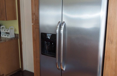 * This vacation home has a full modern kitchen! The kitchen has all stainless steel appliances with an electric range (stovetop and oven), refrigerator, dishwasher, microwave, and toaster. There is also a large stainless steel sink and lots of counter space and cabinets!