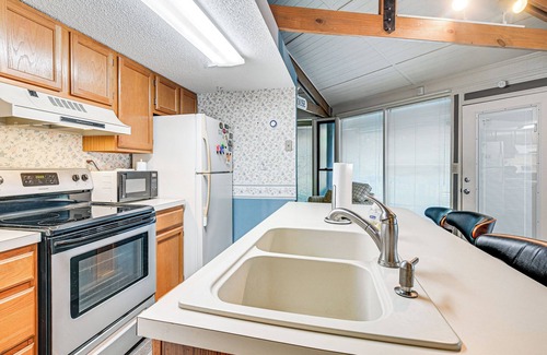 Your next Atlantic retreat awaits at ‘Myrtle Beach Tree House.’ Tucked away in a quiet setting just a short drive from the shores of Surfside Beach, this 2-bedroom, 2-bath vacation rental is perfect for a rejuvenating coastal getaway. When you’re not relaxing by the water, tee off at any of the area’s world-class golf courses, tour the Ripley’s Aquarium, or check out restaurants at Broadway at the Beach!