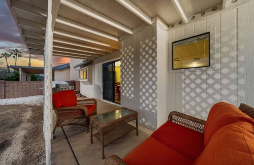 Residential 3-bedroom, 2-bath home with 2-car garage and fenced backyard. Open floor plan with high ceilings, well-equipped kitchen, and welcoming living room. Stylishly decorated with tasteful touches and ample space for your stay. Covered back patio with outdoor seating, new grill, and fire pit. The backyard is perfect for stargazing nights, and the home is close to the national park for daytime exploring.