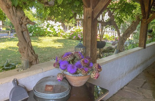 Charming ensemble consisting of the owner's house and, separately, a cosy 4-person gite (2 bedrooms plus bathroom) and, next to it, a lovely bedroom with another bathroom. Ideal for couples travelling together, yet wanting their privacy. The house is on the edge of a small hamlet, at the end of a cul-de-sac, so tranquil. Views over rolling hills and walnut groves. The house has several sitting areas and a lovely garden