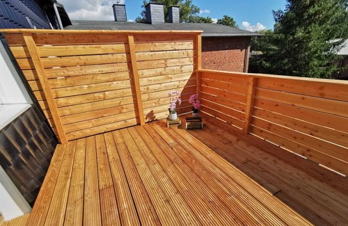 Neue Ferienwohnung auf dem Land mit Dachterrasse aus Holz | House in Zarpen