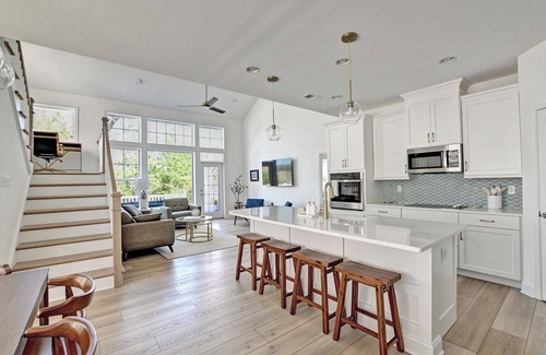 Welcome to your newly-built, 5-bedroom coastal retreat, just a short 10-minute drive from the beach, but away from the crowds in a beautiful, peaceful new community. The home boasts modern amenities, lots of space for relaxing and entertaining, sophisticated decor, and excellent views of the adjacent wetlands. Its a short walk to James Farm bay-side beaches. And with two master bedrooms, it's a perfect fit for two families vacationing together or a large, multi-generational group.