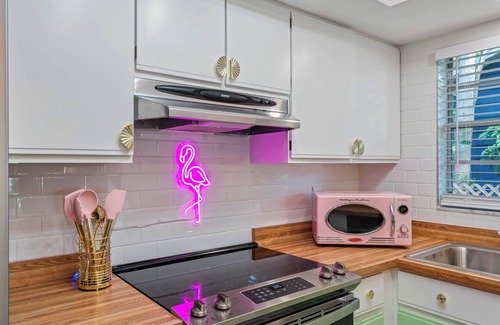 BOOK NOW to come and EXPERIENCE the famous Anna Maria Island Beaches that are only 12 minutes away! Experience the Kokomo State of mind at The Pink Flamingo! This FUN, UNIQUE & PET FRIENDLY home has been fully renovated. There are 3 large bedrooms, 2 full bathrooms, as well as a Dreamy Kitchen & Coffee Bar. The decor has been carefully curated to create a Photo-Worthy experience in each room. Enjoy the custom wall murals & outdoor patio space where you can relax & enjoy the Florida Sunshine!