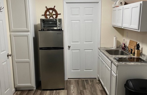 Wide screen TV, high speed internet, full bath, kitchen, fridge, microwave, mini oven/air fryer, grill.