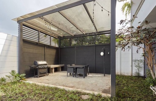 Newly renovated, spacious and modern home, 5 minutes walking to the USA Embassy. Centrally located in the heart of Antiguo Cuscatlan, with 4 bedrooms, each with its own private bathroom, 2 balconies and a incredible outside terrace with Gazebo. Tastefully decorated with brand new furniture. This is your perfect home base for all of your errands in San Salvador or that weekend getaway with the family in the City. Includes hotel style amenities and everything you will need to feel at home.