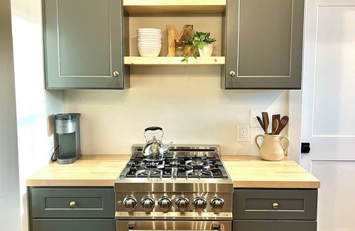 You will find all the amenities you need in this high end kitchen, including cookware, blender, toaster, Kuerig organic coffee, teas, creamer, spices, sugar, oils, condiments etc. There will be pancake mix, maple syrup and butter provided in the fridge for you.