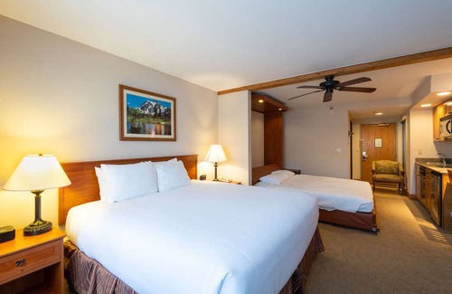 This room is privately managed by the owner Stay Living the Dream (StayLTD). This means it's been upgraded beyond the basic amenities of the Grand Lodge itself. You have full access to all the hotel amenities during your stay. The room comes fully stocked with towels, sheets, soaps, dishes, appliances, coffee maker, crock pot, extra hot plate, pans/pots etc. You truly have almost a full kitchen to make the most of your time! Please reach out to StayLTD if you need anything as the Front Desk only can help with Check in/out services.