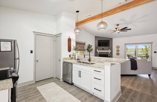 - Fully equipped with a refrigerator, dishwasher, microwave, stove, oven, grill, dishes & utensils, dining table, coffee maker (standard, please bring your own coffee), and an ice maker.
