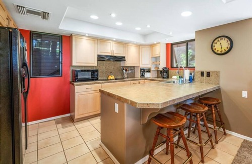 This home is fully stocked with beach chairs, a portable cooler, and umbrellas for those beach days. You are 6 miles from Waikoloa Resort and some of the top beaches in Hawaii. The onsite pool is well-kept and has two BBQ grills for guests' use, as well as shaded seating areas if you want to dine at the pool.