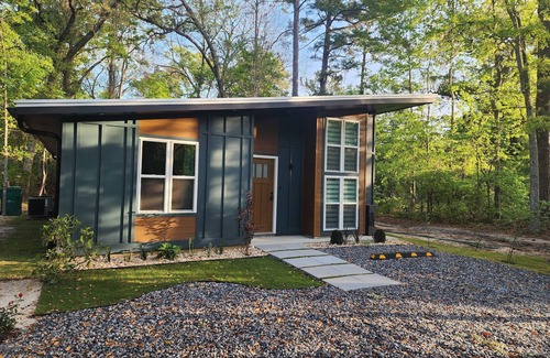 New! We are halfway between Savannah and Tybee Island (ocean). Welcome to our unique custom-built cottage, professionally designed by a SCAD graduate and constructed in 2024. Nestled on a preserved 1/4 acre of native land, our cottage is surrounded by lush trees, palm trees, and other indigenous vegetation.