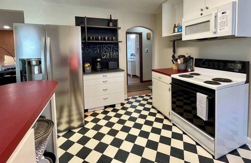 Enjoy a stylish '50's experience in this newly renovated, centrally-located place only 3 mins to UNMC. Close to UNO, trendy Blackstone area, downtown & CHI center. Cozy up to the fireplace or toast some marshmallows in outdoor fire pit. Beautiful bedrooms and full kitchen with cooking essentials. Two bedrooms on main floor, one with large built-in desk space to get your work done. Lower Walk-Out has 3rd large bedroom, Sitting area with TV, Contemporary full bath, and laundry area.