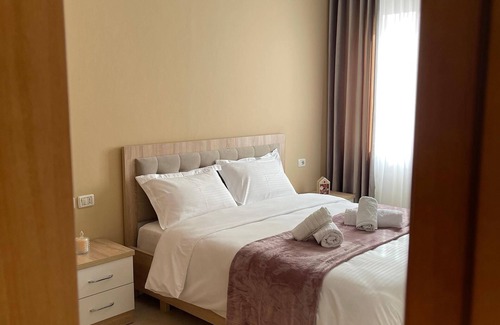 Albanian Bliss – Your Perfect Home Away from Home Welcome to Albanian Bliss, a cozy 3rd-floor apartment with a private balcony, perfect for relaxing mornings or evenings. Featuring a comfortable bedroom, a versatile living room, a fully equipped kitchen, and a modern bathroom. Recently renovated with high-quality furniture. Albanian Bliss offers everything you need for a comfortable and enjoyable stay, just 100 meters from shopping malls, cafés, restaurants, and entertainment, you'll have everything you need at your doorstep. The interurban bus station is only 50 meters away, while the main city bus station is just 20 meters, making it easy to reach the city center in just 8 minutes. With modern, clean interiors and a calm atmosphere, Albanian Bliss is the perfect spot to relax and explore the city, whether for a short or extended stay.