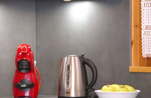 You will find a 3-room apartment spanning 59 square meters, featuring an open living/dining room with a dining table and satellite TV (flat screen), as well as a hi-fi system. This spacious and bright unit offers rustic and cozy furnishings, with an exit leading to the garden. The bedroom accommodations consist of one double bedroom equipped with a double bed measuring 160 cm by 200 cm in length, and another room housing two beds, each 80 cm wide and 200 cm long. The apartment also includes an open kitchen area, complete with an oven, dishwasher, four induction hot plates, a toaster, kettle, microwave, electric coffee machine, Capsules for the coffee machine (Dolce Gusto) available as an extra, a raclette grill, and a fondue set (cheese).