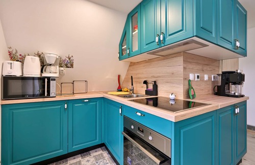 Welcome to your cosy holiday home in Bjelovar, which will pamper you and your loved ones during a relaxing holiday. Look forward to an extensive breakfast in the lovingly designed ambience of the open kitchen, which invites you to cook your favourite meals together. Treat yourself to relaxing moments in the sauna or whirlpool and get together in the evening for sociable film or games evenings in the cosy living room.