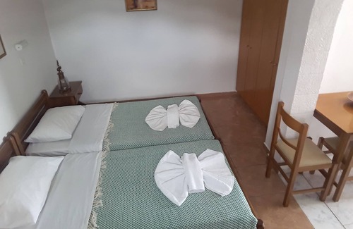 Our apartments are fully equipped with air conditioning, wi-fi, TV, kitchen, laundry, wonderful sea views. It is ideally located in Livadia. They are a 2-minute walk from the village square and 5 minutes to the beach of Livadia..You have the option of adding another bed and becoming a triple.