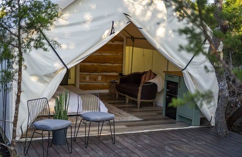 Oak Retreat Glamping With Private Hot tub! | RV Rental in Fredericksburg
