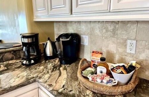 There is a queen sofa sleeper in the downstairs living room allowing the home to accommodate a maximum occupancy of 10 guests.