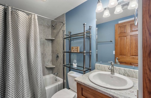 Just what you need on Vacation!! Unobstructed views of the Atlantic and Rockport Harbor from the comfort of your living room! Relax and enjoy the ocean views and views of the town from this cozy and elegant Guest House. It is a 2 minute drive to downtown, to front and back beach and Historic Bearskin Neck! On the main level you have the open concept kitchen and living room with a cozy granite fire place. Also on this level is the master bedroom with a king size bed, a large closet and a full bathroom. Going down the stairs you have the second bedroom with bunk beds twin size and the second full bathroom. An extra mattress will be in the closet that can be use for an extra children. From this level you have access to a nice hangout area with a bar that leads you outside to a beautiful patio and backyard. Also in the patio there is a grill, dinning area and a fire place(use just for decoration) and a playground for small kids! Create unforgettable memories in this cozy, elegant, and spacious oceanfront retreat. Welcome to your home by the sea!