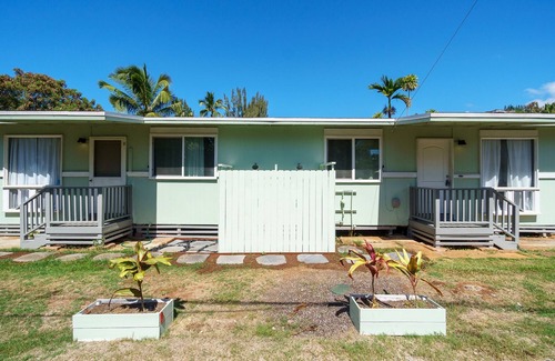 Cozy, comfortable with a/c, this bungalow is walking distance to 3 Tables Beach/Waimea Bay, Foodland market and is across the street from the ocean! The bike path that runs from Sunset Beach to Waimea Bay is across the street keeping you in the coveted North Shore "zone"! Please ask about renting both sides for a total of 4 bedrooms 2 baths plus 2 outdoor showers.