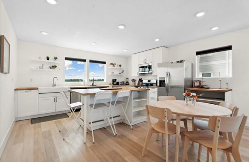 Wake up to the sound of waves and enjoy your morning coffee on the deck overlooking the shoreline. Inside, the open-concept living space features a fully equipped kitchen, dining area, and a bright, spacious living room designed for relaxation and connection.