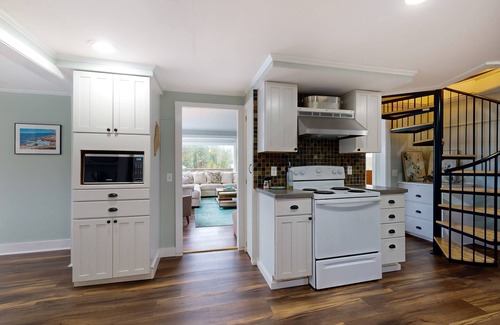 The interior is a showcase of the natural setting as well, with the ocean on display in the window-lined living room, the dining room, and all three bedrooms. Enjoy a spacious kitchen, both a living room and a den (with smart TVs) for after-dinner movie nights, and family-friendly conveniences that include a washer/dryer, a high chair, a booster seat, and baby gates. Complimentary WiFi is provided as well.