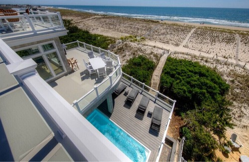 This newly constructed oceanfront estate is a masterwork of nautical modern elegance. The spectacular residence presides over prime oceanfront real estate, commanding majestic views from multiple rooms. Four King en suits, a two - bedroom family suite, three family rooms and an in-deck pool fill the palatial six bedroom seven bath residence. The top floor offers a lavish venue for entertaining, with an open concept living, dining and kitchen area - all backdropped by Atlantic vistas.