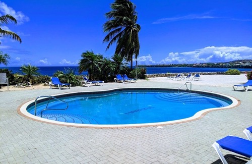 This two story three bedroom oceanfront bungalow provides everything needed for a relaxing stay on Curacao. The large second story porch overlooks the Caribbean Sea and stunning unobstructed sunset views. Don your dive gear and enjoy direct access to memorable diving on the house reef. The community pool and two community gazeboes provide areas for socializing with other guests or private family cookouts. This bungalow is set up for six adults and is ideal for large families or multiple couples looking to share costs.