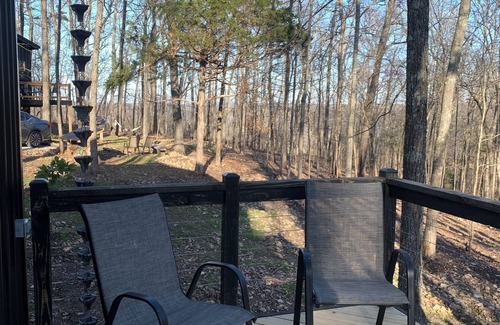 We offer an open fire pit at your cabin as well as a communal gathering area with seating. If you just want to enjoy peace and quiet, you can relax on your own deck and enjoy the view. You can go for a hike on the 25 acre property and check out local wild life and plants as well.