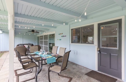 Just steps from one of the most beautiful tourist-free beaches on the island of Oahu, this Hawaiian style home is a perfect peaceful getaway for your extended family. Listen to the waves crashing as you relax on the lanai, or barbeque for your group in true outdoor Hawaiian fashion. The house provides what you and your family need to relax, play, cook, and retreat. Open and airy, the Ohana Beach House provides large social spaces for your group to comfortably share their vacation together.