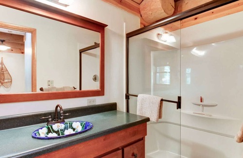 The driveway is quite steep going down to the house. Most cars should have no problem but an AWD or 4WD car may be preferred. There is a parking area at the top of the drive for those who would like to leave a car there and shuttle with other guests. Four-wheel drive/AWD and/or chains are required if there is snow!
