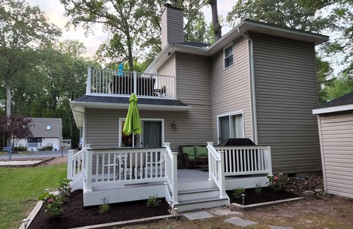 One Particular Harbor is a dog-friendly beach rental located in the Angola By The Bay community in Lewes, Delaware. This 3 BR 2 Bath, sleeps 8. OPH has 2 living areas, 2 decks surrounded by mature trees in a friendly community with pool, marina, crab docks, kayak launch, and playground. OPH is a fun, relaxing, convenient home about a 20 minute drive from the beaches.