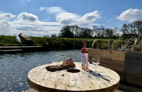 The house has a terrace and a wharf where you can fish or enjoy the beatiful view of boats on the Hargervaart.