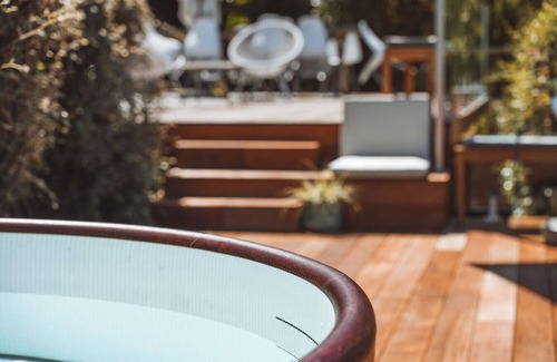 Our Bungalow offers a serene urban sanctuary, though please note that it does require the use of stairs to access the bathroom and kitchen in the main building.