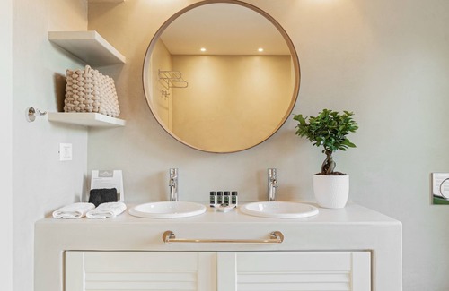 A beautiful garden, full of flowers, a picturesque facade and a modern stone made lobby area with a glass ceiling... It’s the details of Casa di Fiori Andros Suites that make the difference and give a magical aura of fairytale to your stay.