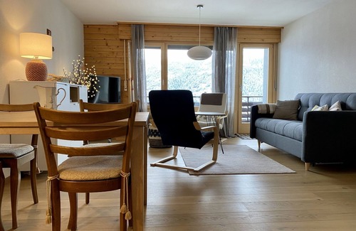 Outside : on the 4rd floor of a five-storey apartment house, lift, south balcony with beautiful view, for 4 persons -Inside : approx. 50 sqm, living, sofa bed (140cm) with dinette -Rooms : 1x with 2 singel beds -Sanitary : 1 bathroom and 1 WC -Kitchen : closed kitchen with a cooktop, fridge -Various : TV - Wifi, pets are not allowed, non-smoker, ski locker i the house, 1 parking space -- -- -- Final Cleaning: A normal cleaning is included in the rental price. -- -- Available Kitchen Towels: Can be rented at the agency. -- -- Available Bath Towels: Can be rented at the agency. -- -- Bedsheets: -- Can be rented at the agency. -- -- Parking: A parking place. -- -- Caution: A deposit of 500.00 is required. -- -- Cancellation Insurance: Included in the rental price for cancellation in case of major forces (medical attestation) -- -- Administrative Costs: None. -- -- Pets : According to description. -- -- Tourist Tax: Included in the rental price. --