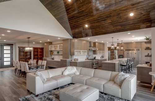 Open-Concept Living Space: The home boasts a large open-concept kitchen, living room, and dining room, making it ideal for families and professional groups to enjoy themselves together.