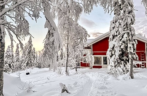 232 km north of Rovaniemi, near the village of Raattama. Wooden house in 1993, living room/kitchen with convertible sofa, a sauna (wood stove), washing room/wc (shower and bathtub), dressing room. Upstairs: 4 bedrooms, two with double bed and two with 2 single beds, lounge, wc, balcony. Coffee maker and water kettle, freezer on request. Separate grill hut.