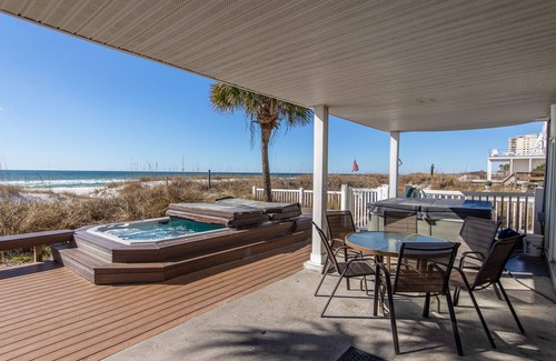 The sand is your back yard directly on the beach. 5500 SQ FT.11 BR 6 BA 2 Kitchens, Hot Tub ^ Heated Pool (11/15-3/31), East Thomas Drive Area Walk to Restaurants. Two large covered decks on the beach side, additional sundeck with built in seating. Parking for 5-6 cars 3 spots covered. Free Wi-Fi, and cable - All Non-smoking