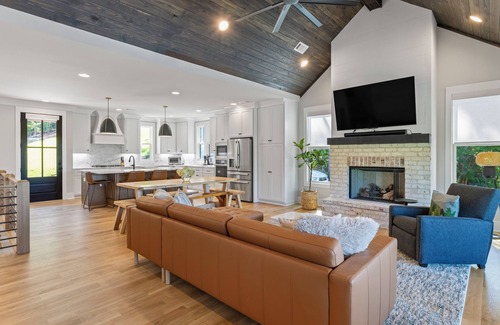 Discover your dream getaway at Paradise Found, a stunning brand new build located on the serene shores of Lake Martin with a private spa and pool! This luxurious home boasts 5 bedrooms, 3 bathrooms, and 2 half baths, ensuring ample space and comfort for your group. Designed with meticulous attention to detail, Paradise Found offers two master suites with king-sized adjustable beds, multiple living areas with large TVs and cozy fireplaces, a fully equipped gourmet kitchen upstairs and a convenient kitchenette downstairs, ample dining space, and an array of outdoor amenities including a putting green. Enjoy the heated spa and pool, relax on two beautifully furnished patios, and make use of the covered dock and sandy beach area complete with corn hole. Whether you're cooking up a feast, watching your favorite shows, or soaking in the serene lakeside views, every moment at Paradise Found promises to be unforgettable.