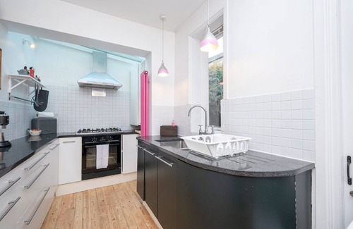 My bright and spacious 1850s coach house offers a stylish retreat in vibrant Hackney, blending historic charm with modern luxury. Recently renovated, it features a fully equipped kitchen, comfortable beds, a rainfall shower, and a private balcony. Enjoy fibre optic internet, a Smart TV, and a generous library. Ideally located near London Fields and Broadway Market, with excellent transport links from Dalston Kingsland and Dalston Junction, it's the perfect East London base.