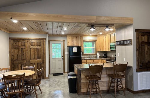 This rustic with modern amenities cabin is located within minutes from Lake Ouachita and the Caddo River. Montgomery county also has something for everyone from hiking, biking, walking the many trails, digging crystals, as well as hunting and fishing. Our cabin is approximately 3 miles to Twin Creeks with access to a boat ramp, public swimming , and a fishing pier. It is also approximately ten miles to Ouachita Shores, Shangri La & Mountain Harbor Marina. The cabin has a full kitchen with bar seating for 2, a kitchen table that seats 5 and 4 double beds that sleeps eight people. The cabin is located out in the country beside the Ouachita Mountains but only minutes to Mt. Ida for groceries and mom and pop restaurants. If the night life or horse racing is what your looking for, Hot Springs is only 45 minutes from our newly built cabin and is home to Oaklawn Horse Racing. A 42 inch Roku TV is available as well as wifi added to the cabin for guests to enjoy. Please note we are a smoke free cabin and only allow smoking outside. We also love fur babies but have a strict no pets policy. Any violation of these rules by a renter will result in a minimum of a $500 fee upon their departure.