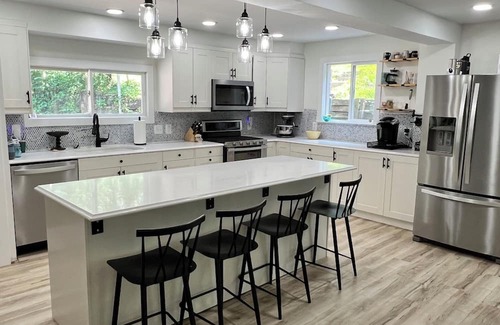 Spacious Kitchen: A spacious kitchen is a highlight, offering a place where meals can be prepared with ease and enjoyed together. It's likely a central hub for socializing and culinary adventures during your stay.