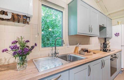 Shower Room: Cubicle Shower, Heated Towel Rail, Toilet. Gas central heating, electricity, bed linen, towels and Wi-Fi included. Travel cot and highchair. Welcome pack. Bike Store. Private parking for 3 cars. No smoking.. Welcome to our charming one-bedroom holiday lodge surrounded by woodland and colourful gardens a mile or so from the village of Grainthorpe, Lincolnshire. This cosy retreat is the perfect haven for a couple or a small family seeking a tranquil getaway.