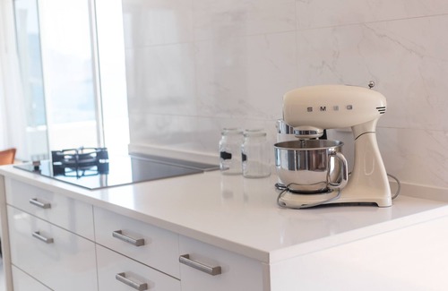 The fully furnished apartment has excellent free WiFi, a dishwasher, washing machine, tumble dryer, double fridge with freezer including iced dispenser, microwave, oven, built-in coffee machine, and a gas stove / induction hob.