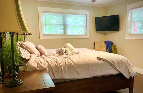 Family friendly and pet friendly home conveniently located in Sylvan Lakes, Rabun Gap. The Lake is a 2-minute walk from our home. Outdoor fire pit with firewood provided. Close to many local attractions that include Wineries, Highlands Aerial Park (zip lining), Highlands Outpost (snow tubing, roller coaster), Julep farms winery.