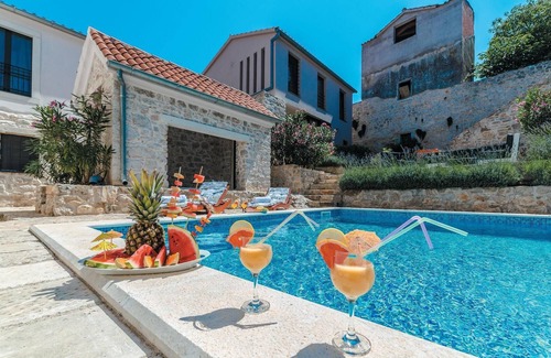In the northeastern part of the island of Pasman lies the village of Tkon, just opposite the town of Biograd na Moru. Right by the sea and first beaches is this vacation house with two outbuildings in the yard, which together form a beautiful unit. In the middle there is the pool, jacuzzi, sun loungers, as well as a covered gazebo. The vacation home is created for families, group of friends and navigators who want to spend an unforgettable vacation together. On the ground floor of the main house there is a large kitchen with dining area and exit to the front terrace, to the sea. Behind the house is the pool with two dependance. Each bedroom has its bathroom en suite and is separate, as well as uniquely decorated, which can be seen in the artistic paintings in each bedroom and the special fixtures and plumbing in the bathroom. From some rooms you have views of the sea and the islands. Next to the pool is the covered Jacuzzi and during your free time you can also entertain yourself with billiards and table soccer. The property is completely fenced, so children can play undisturbed. Your pet is also welcome. The island of Pasman is connected by a bridge with the island of Ugljan, are both wooded, with lots of greenery and have beautiful pebble and sandy beaches. The place Tkon has its own marina for boats and yachts, so navigators are definitely welcome. With additional costs, catering, daily room service, boat trips to the National Park of Kornati Islands, as well as fishing trips and other can be arranged as needed in advance or possibly on the spot.