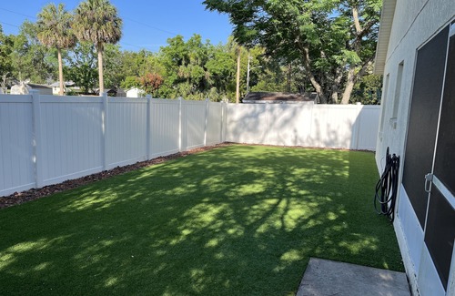 Screen porch overlooks our perfectly pet friendly artificial turf backyard. Each of the two bedrooms have queen size beds with plenty of drawer space. Wi-Fi included. Fully stocked kitchen including a Keurig. About 1.5 miles from Historic Downtown shopping, dining and playing. Downtown offers everything from great shops, cafes, coffee shops, boutiques, boat tours of Lake Dora and walking tours of the Downtown area. We'll provide you with all the info you need to enjoy your stay.